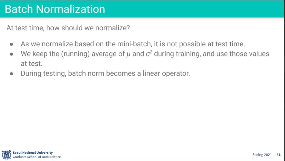 그런데 Batch normalization은 평균과 표준편차가 유사하다는 가정하에 돌아가는 방법인데, 모델을 학습 시키고 시간이 많이 지나면, 현시점의 테스트 데이터가 학습 시점의 데이터와 평균, 표준편차가 같다는 보장을 할 수가 없음