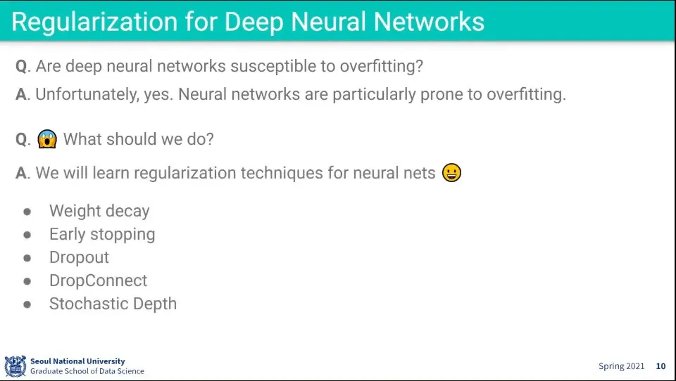 과적합 문제를 방지하기 위해 Regularization(규제)을 사용함. 이것은 overfitting을 방지한다.