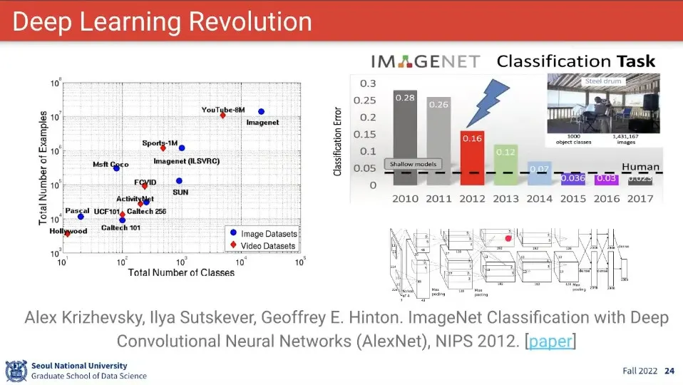 ImageNet 대회에서 AlexNet이 성과를 내면서 Deep Learning 혁명이 시작됨