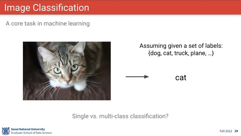 이미지 분류 문제는 주관식이 아니라 이미지와 라벨을 컴퓨터에게 주면 컴퓨터가 그 이미지에 해당 하는 라벨을 뽑아주는 것