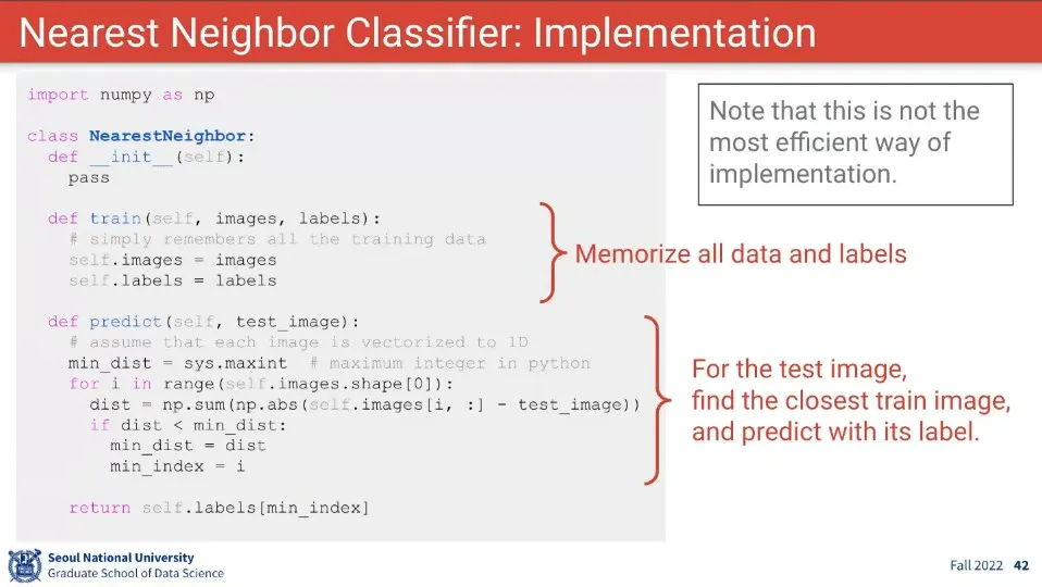 Nearest Neighbor를 기준으로 train, predict 하는 코드 예시