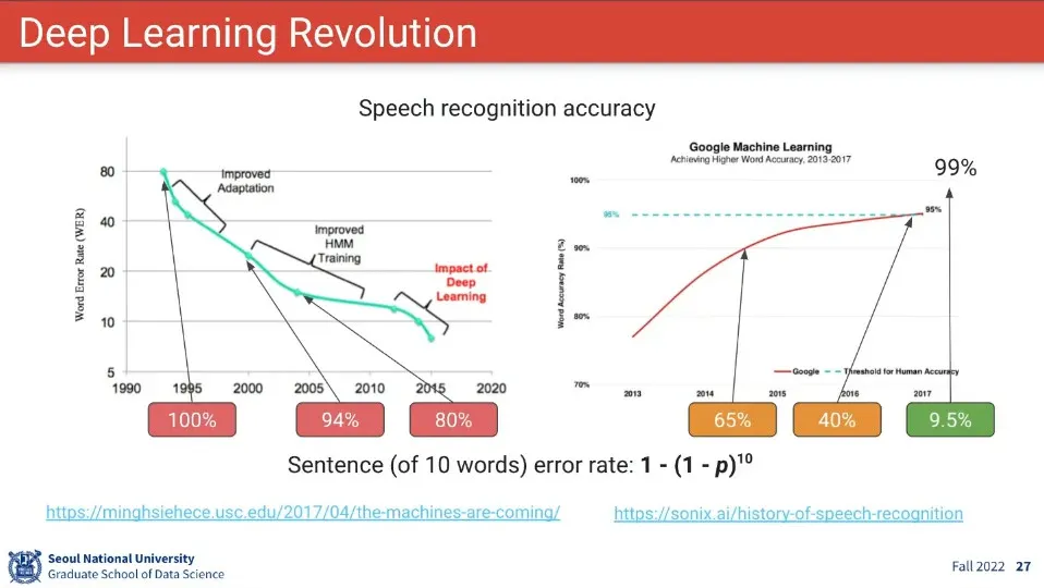 그러나 아직 음성 인식에 대해 단어 단위로는 정확도가 높은데, 그게 문장 단위로 가면 정확도가 많이 떨어짐.