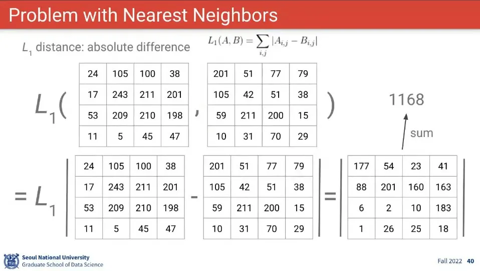 Nearest Neighbor의 아이디어를 차용하여 두 이미지의 픽셀 정보를 이용해서 유사도를 계산한다.