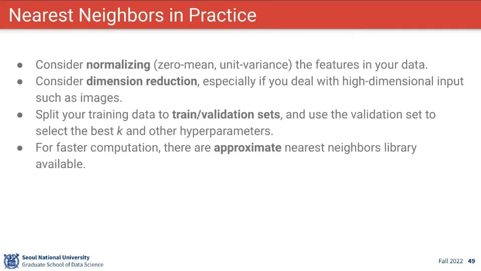 Nearest Neighbor는 사용할 때는 다음과 같은 방법을 적용함