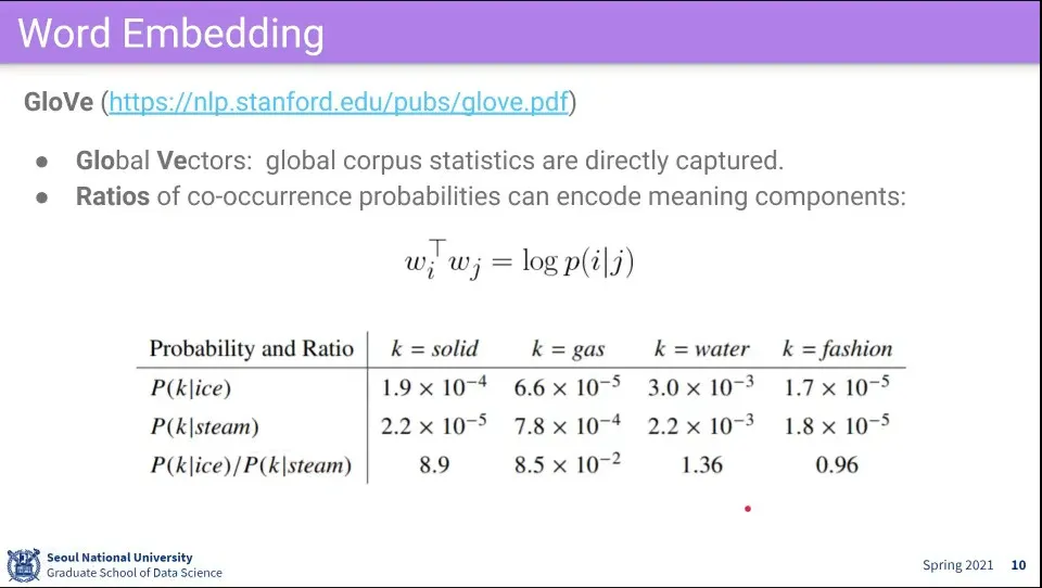 GloVe는 문맥 상의 관계를 이용한 방법