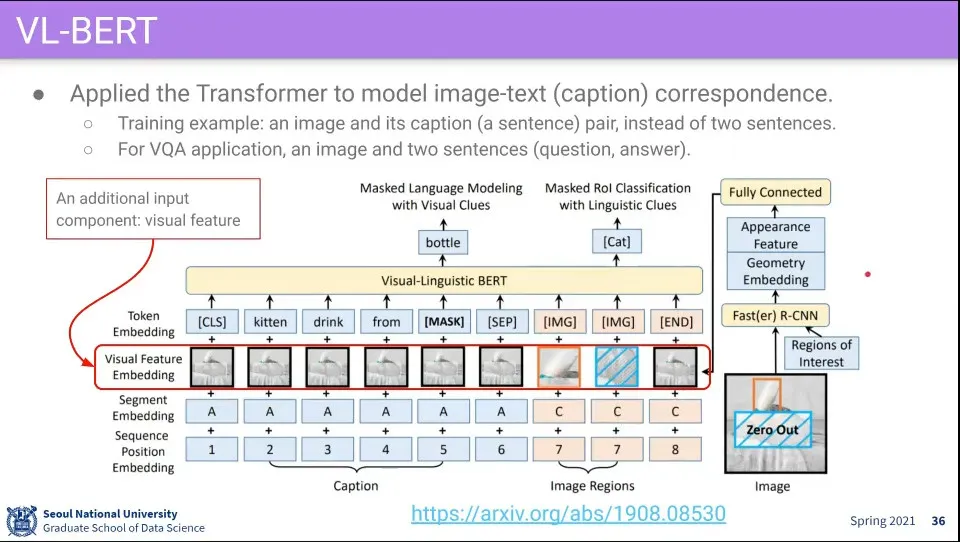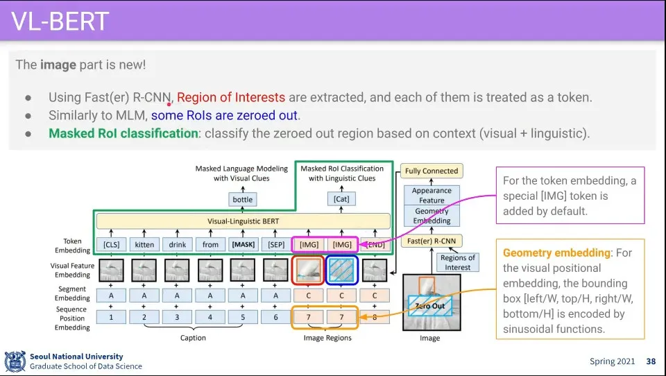 [IMG] 부분에는 이미지에 Fast(er) R-CNN을 돌려서 나온 ROI 부분을 하나의 Token으로 넣음