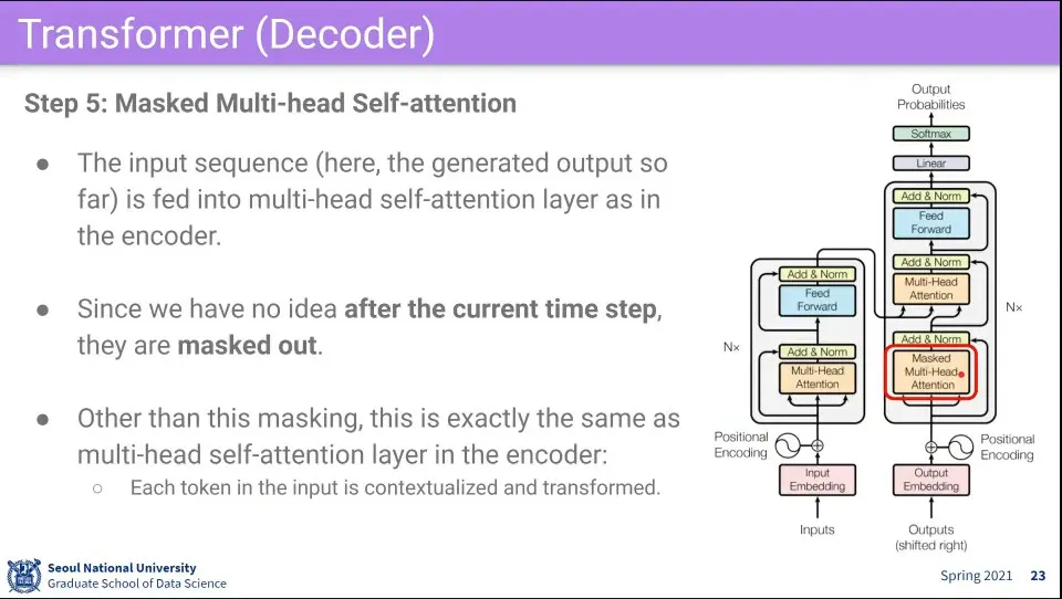 그 후에 Masked Multi-head Self-Attention을 수행함