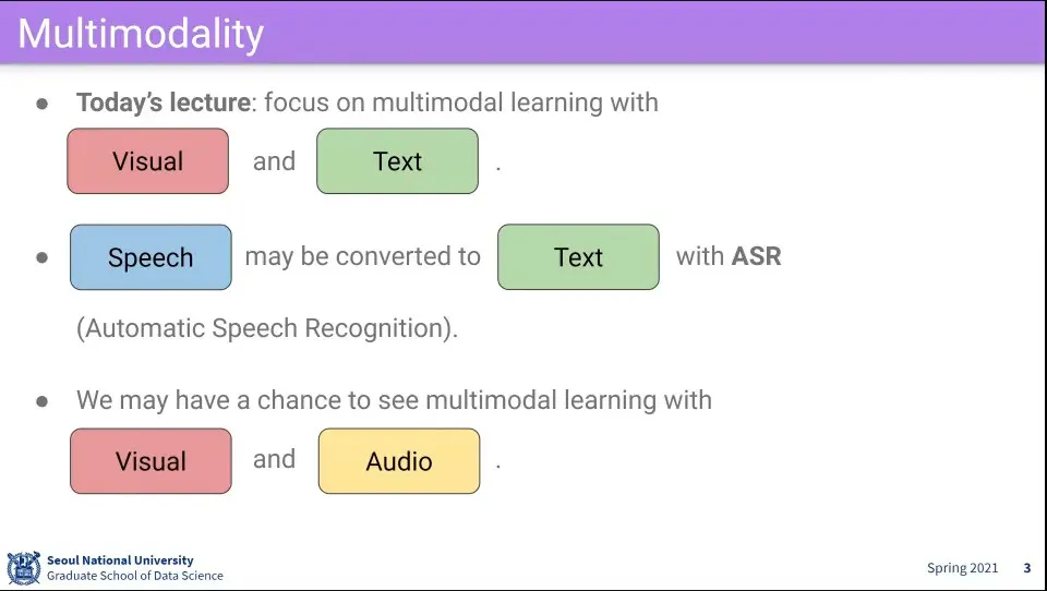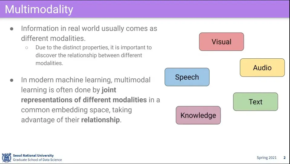 우리가 세상에서 받는 정보는 여러 modal로부터 들어옴