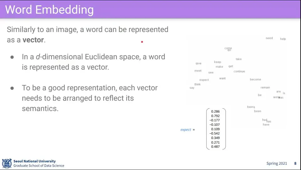 word embedding은 단어를 벡터화 하는 것