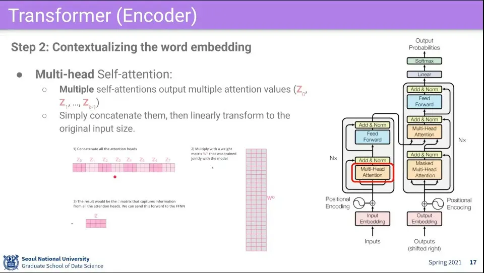 이렇게 변환된 Z는 최초 input X와 크기는 갖지만, attention이 반영된 것이 된다. 이렇게 X를 Z로 변환해 주기 때문에 transformer라고 한다.