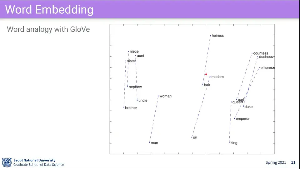 이걸 이용하면 단어들 간의 관계를 이해할 수 있다.