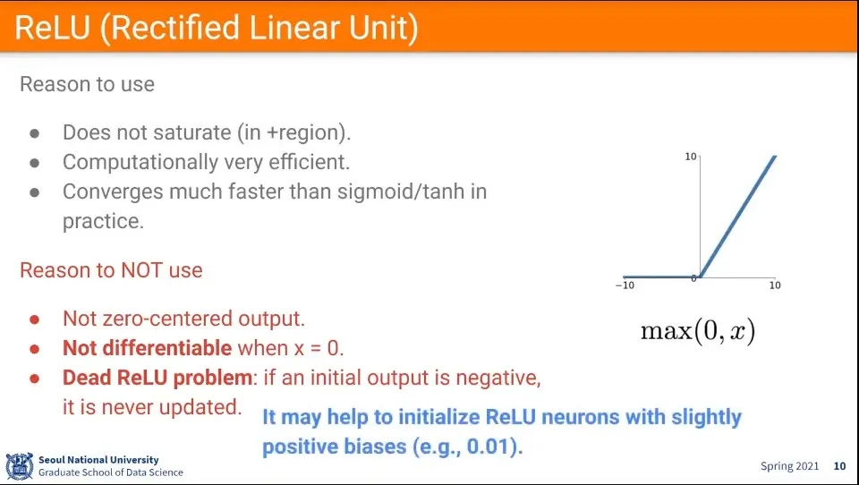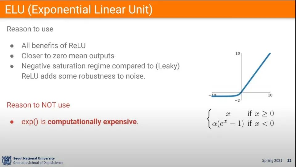 그 후에 최적화를 위해 Leaky ReLU나 ELU를 쓸 수 있다.