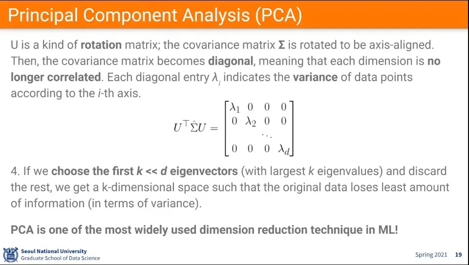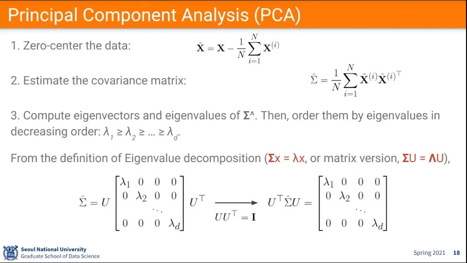 covariance matrix를 이용해서 eigenvalue decomposition(고유값 분해)을 한다.
