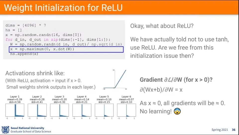 ReLU도 초기화 문제가 있음