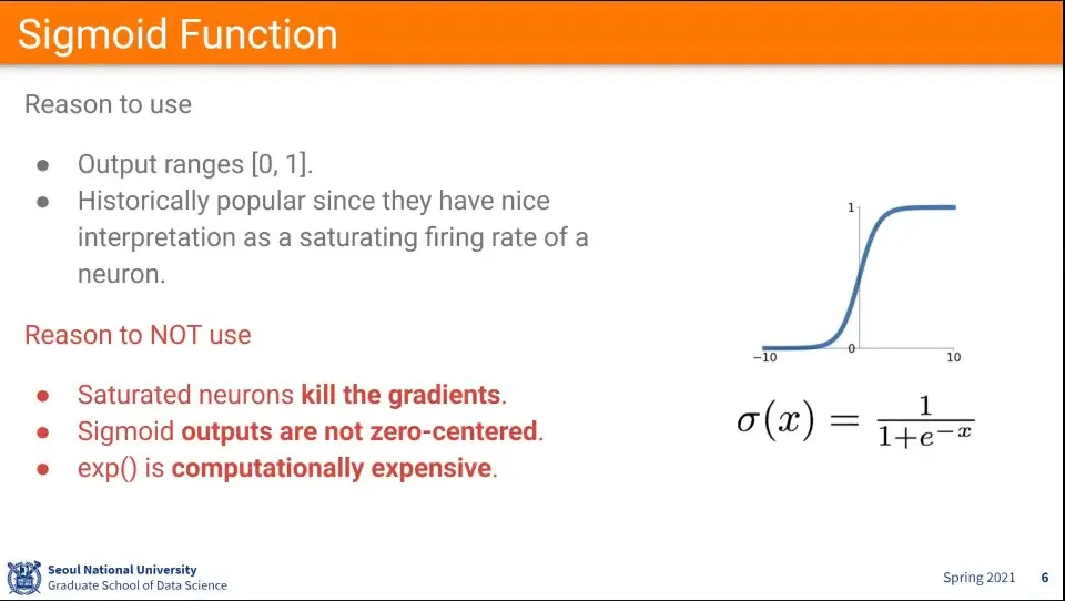Sigmoid는 처음에 많이 썼었고, 작은 네트워크에서는 잘 동작 함