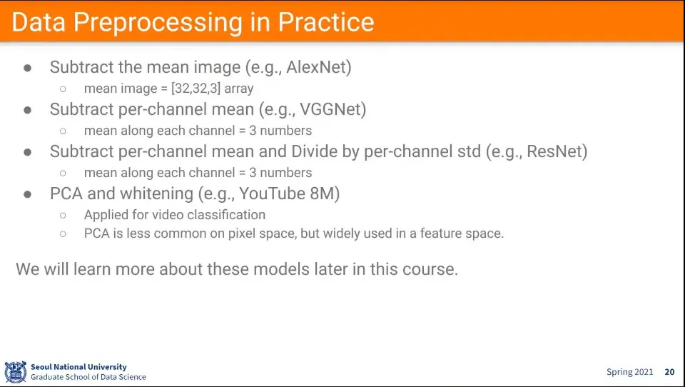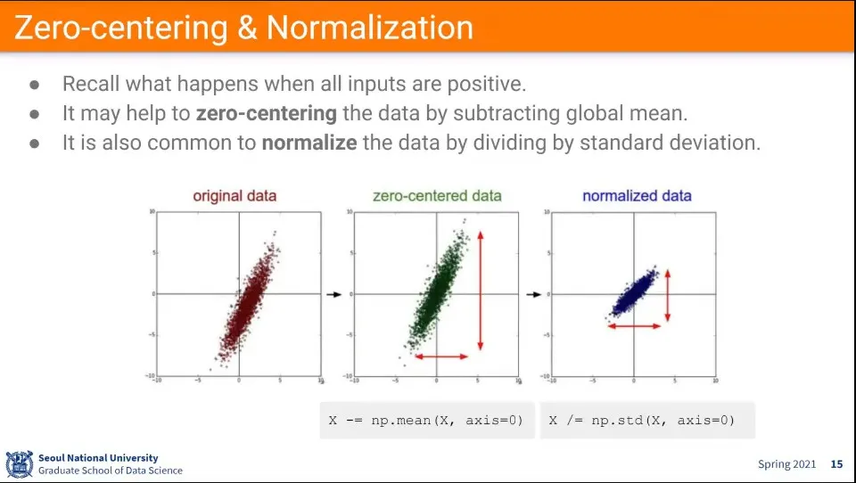 데이터 전처리 단계에서 zero-centering과 normalization을 해준다.