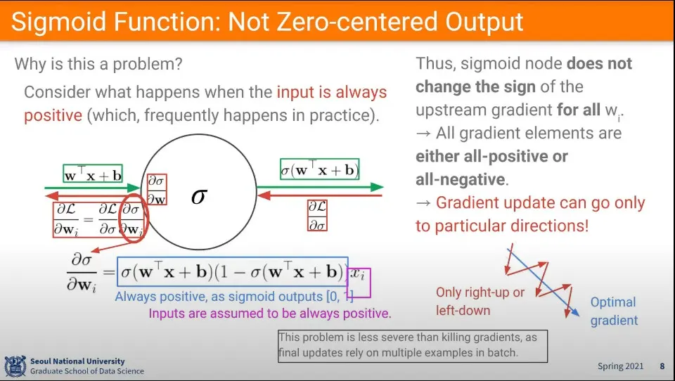 sigmoid가 0-1 사이의 양수만 나오기 때문에 학습이 항상 양수 방향으로만 진행이 됨