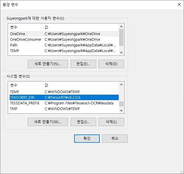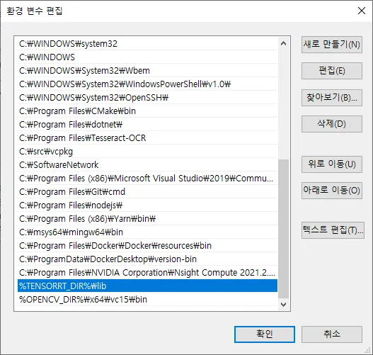 환경변수를 생성했으면 Path에 '%TENSORRT_DIR%\lib' 를 추가한다.