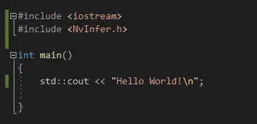 아래와 같이 NvInfer.h 를 include 하고 빌드가 성공하면 성공