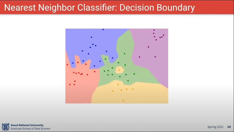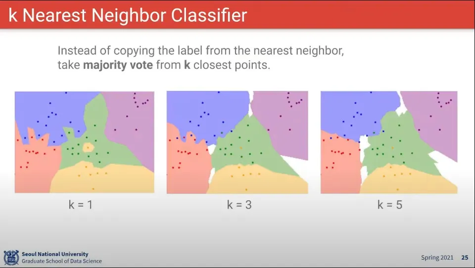 K는 가장 가까운 것을 K개 이상을 사용한 결과 —일종의 투표 같은 셈