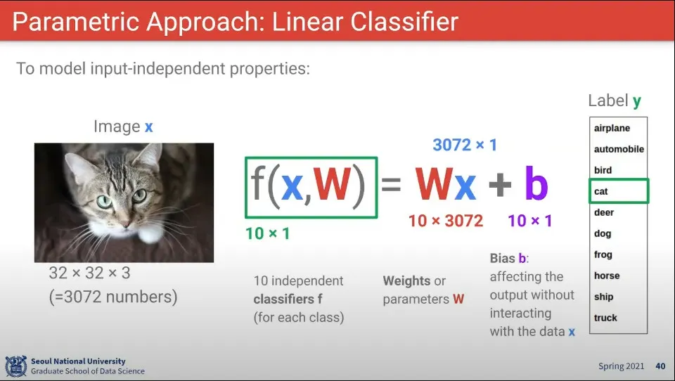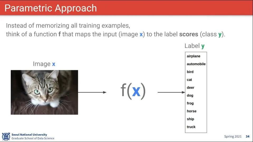 이미지에 어떤 parameter를 적용해서 label을 뽑아주는 것을 생각해 볼 수 있다.