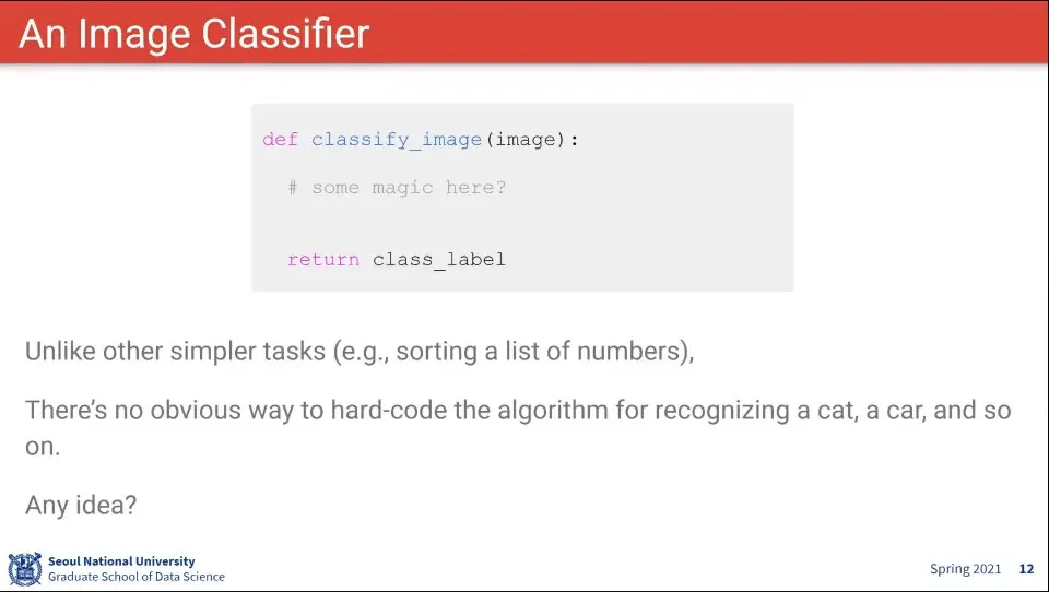 이미지를 받으면 어떤 Label을 뱉어주는 어떤 함수를 생각해 볼 수 있다.