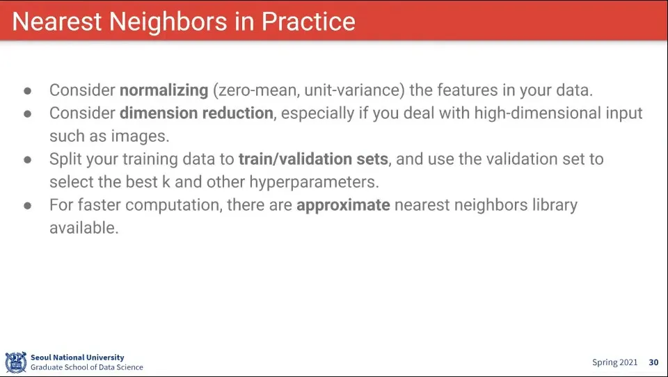 위와 같은 이유로 Nearest Neighbor는 잘 안 쓰지만, 쓰게 된다면 위와 같은 방법을 적용해서 해볼 수 있다.