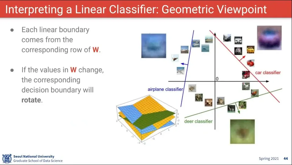 위 함수를 시각해 보면 위와 같다. 각 선형으로 그어진 선 혹은 면을 기준으로 그 영역에 해당하는 label을 고르는 것