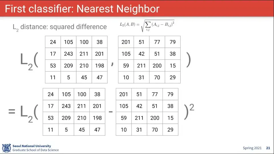 L2 거리를 적용하면 위와 같다. 차이의 제곱의 합