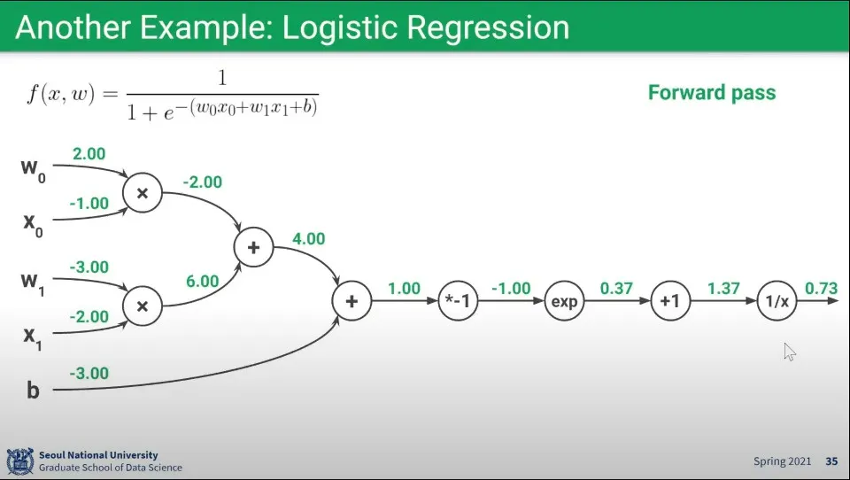 Logistic Regression에 대한 Forward pass 예