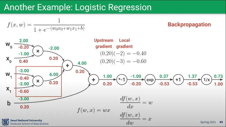노드의 Gradient는 Local Gradient라고 하고, 다음 노드의 Gradient는 Upstream Gradient이라 하고 이전 Gradient는 Downstream Gradient라고 한다.
