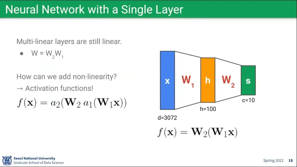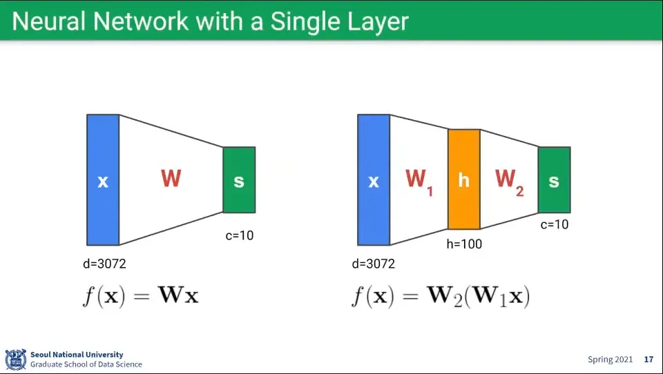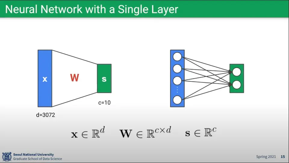 뉴럴 네트워크를 단일 레이어로 구성하면 위와 같다.