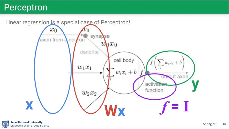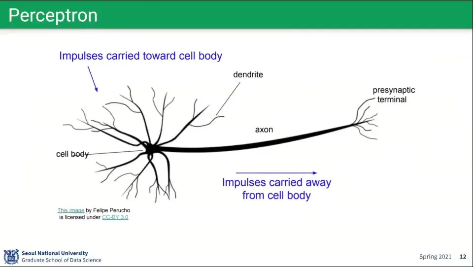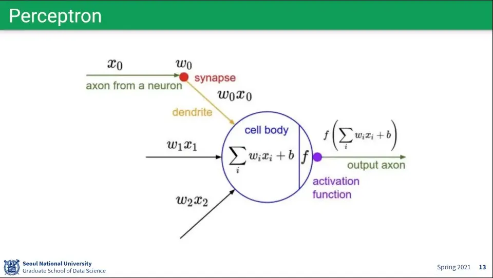 뉴럴 네트워크에서 사용하는 퍼셉트론은 뇌 뉴런의 모습을 모사하여 구성함