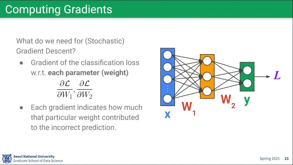 Gradient는 Loss를 기준으로 계산 함