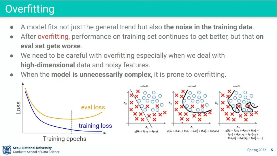 과적합 문제를 방지하기 위해 Regularization(규제)을 사용함. 이것은 overfitting을 방지한다.