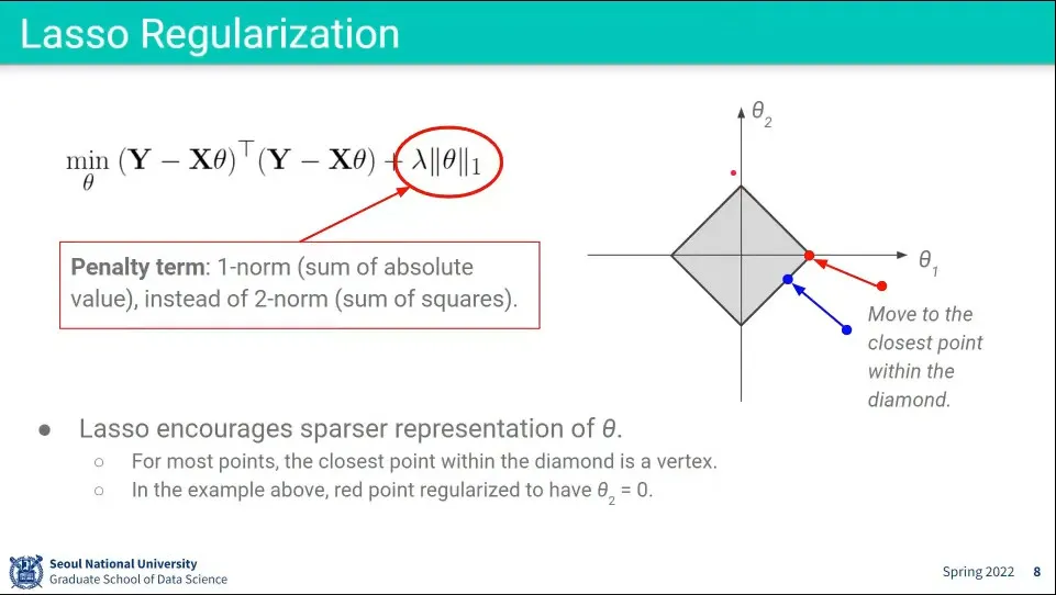 L1 Regularization을 Lasso Regularization이라고 한다.