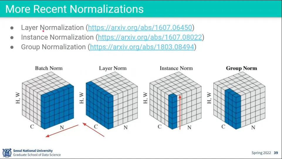 Batch Normalization 이후에 다양한 Normalization 방법이 나옴.