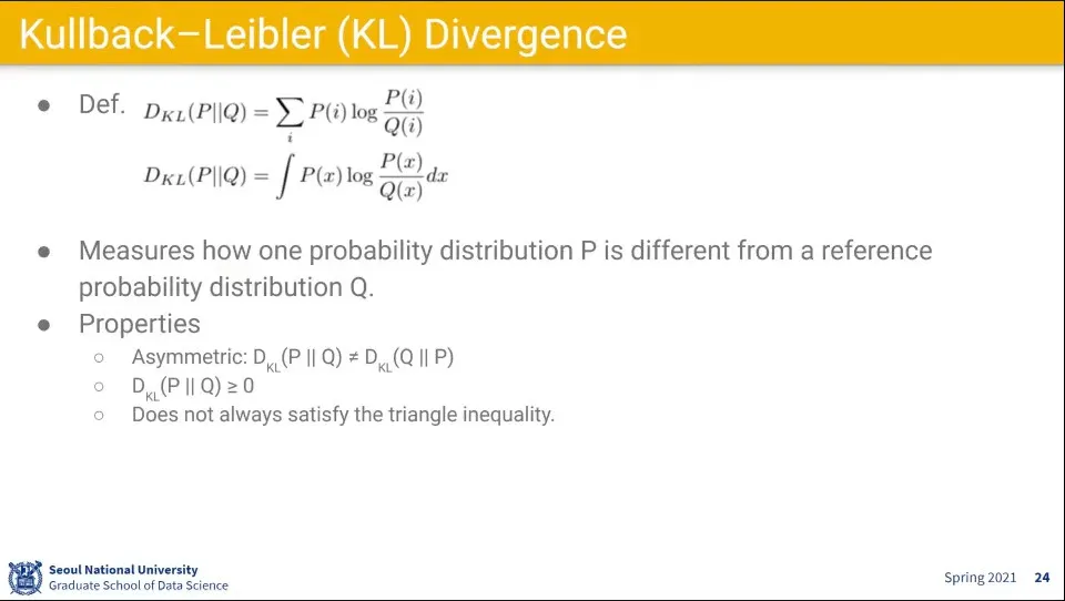 KL Divergence라는 함수도 사용하는데, 이것은 엄밀히 거리 계산하는 것은 아님. 참고용