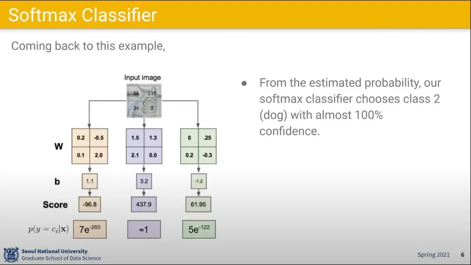 앞선 결과에 대해 softmax를 씌우면 결과를 확률로 이해할 수 있다.