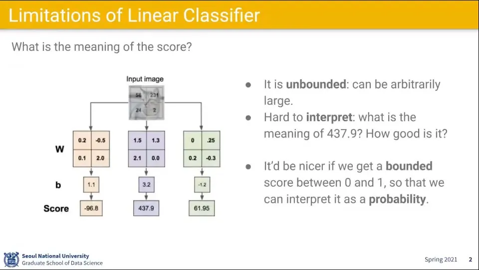 앞서 배웠던 선형 함수에 대해 class 별로 input 이미지를 계산하면 위와 같이 결과가 나오는데, 이 결과는 이해하기 어려운 결과이다.