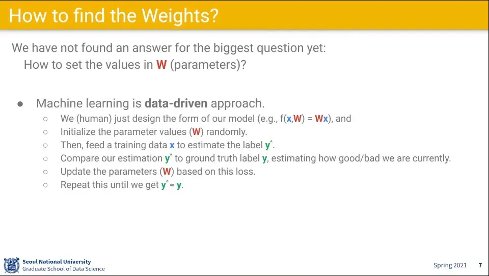 머신러닝은 데이터 기반 접근이다. 따라서 는 데이터로부터 학습해야 함.