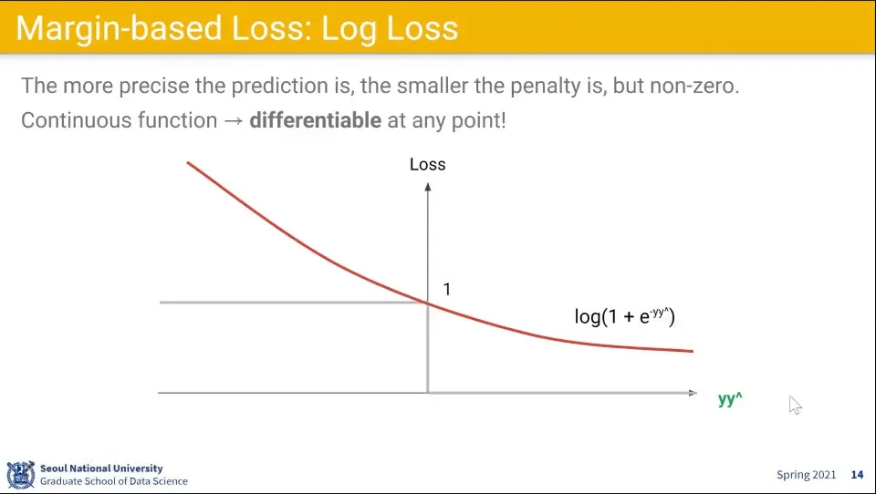0/1 Loss의 문제를 개선해서 위와 같은 Log 함수 로스를 생각해 볼 수 있다.