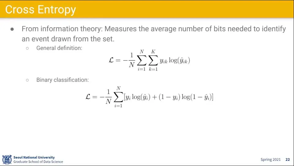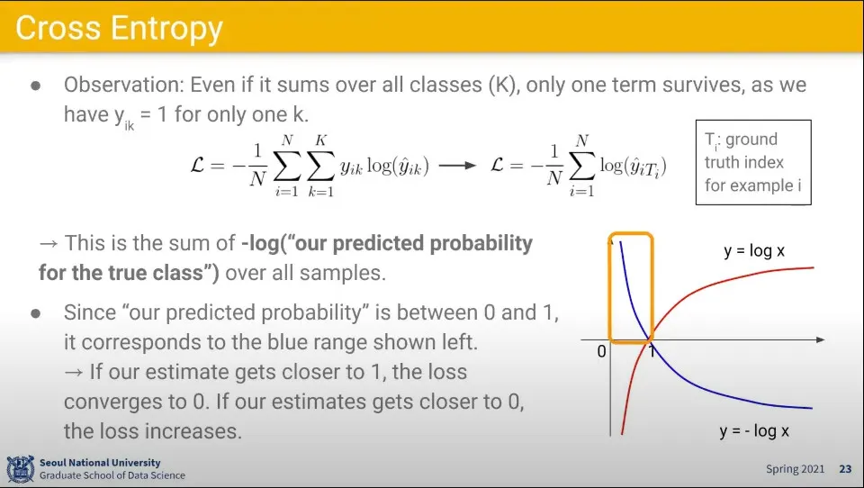 여기서 사용하는 Loss 함수로 Cross Entopy를 사용한다.