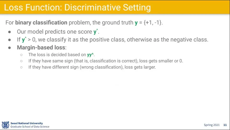 이때 예측의 결과를 측정하기 위해 와 을 곱하여 계산한다. 예측이 맞았다면 곱의 결과가 +가 나오고, 틀렸다면 -가 나올 것이다.