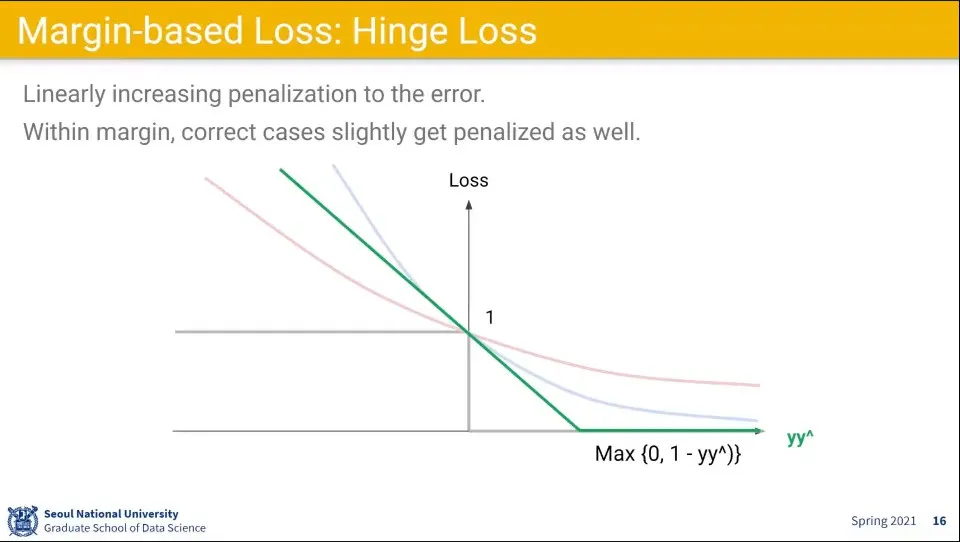 Margin을 둬서 사용하는 Hinge Loss 함수가 있다.