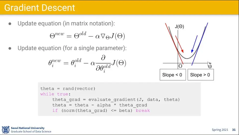 업데이트 하면서 파라미터를 줄여야 하기 때문에 기존 값에 대해 learning rate를 곱해서 새로운 파라미터를 구한다.